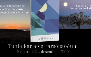 Árlegir sólstöðutónleikar Steingríms Þórhallssonar, organista Neskirkju, fara fram sunnudaginn 21. desember kl. 17. Í viðbót við frumsamin píanóverk frá liðnum árum bætast við ellefu ný sönglög við ljóð Valdimars Tómassonar úr bók hans Vetrarland. Lögin eru líkt og ljóðin augnablik [...]