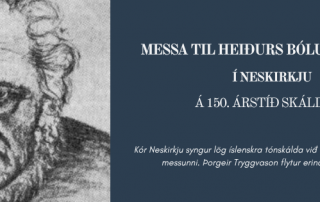 Sunnudaginn 9. nóvember kl. 11 verður barastarf og messa til heiðurs Hjálmari Jónssyni skáldi. Hann er betur þekktur sem Bólu-Hjálmar og fæddist á Hallandi í Eyjafirði 1796. Hann lést 25. júlí 1875. Kór Neskirkju hefur æft lög íslenskra tónskálda við ljóð Bólu-Hjálmars sem flutt verða í messunni. Þorgeir Tryggvason, heimspekingur, flytur erindi um skáldið í [...]